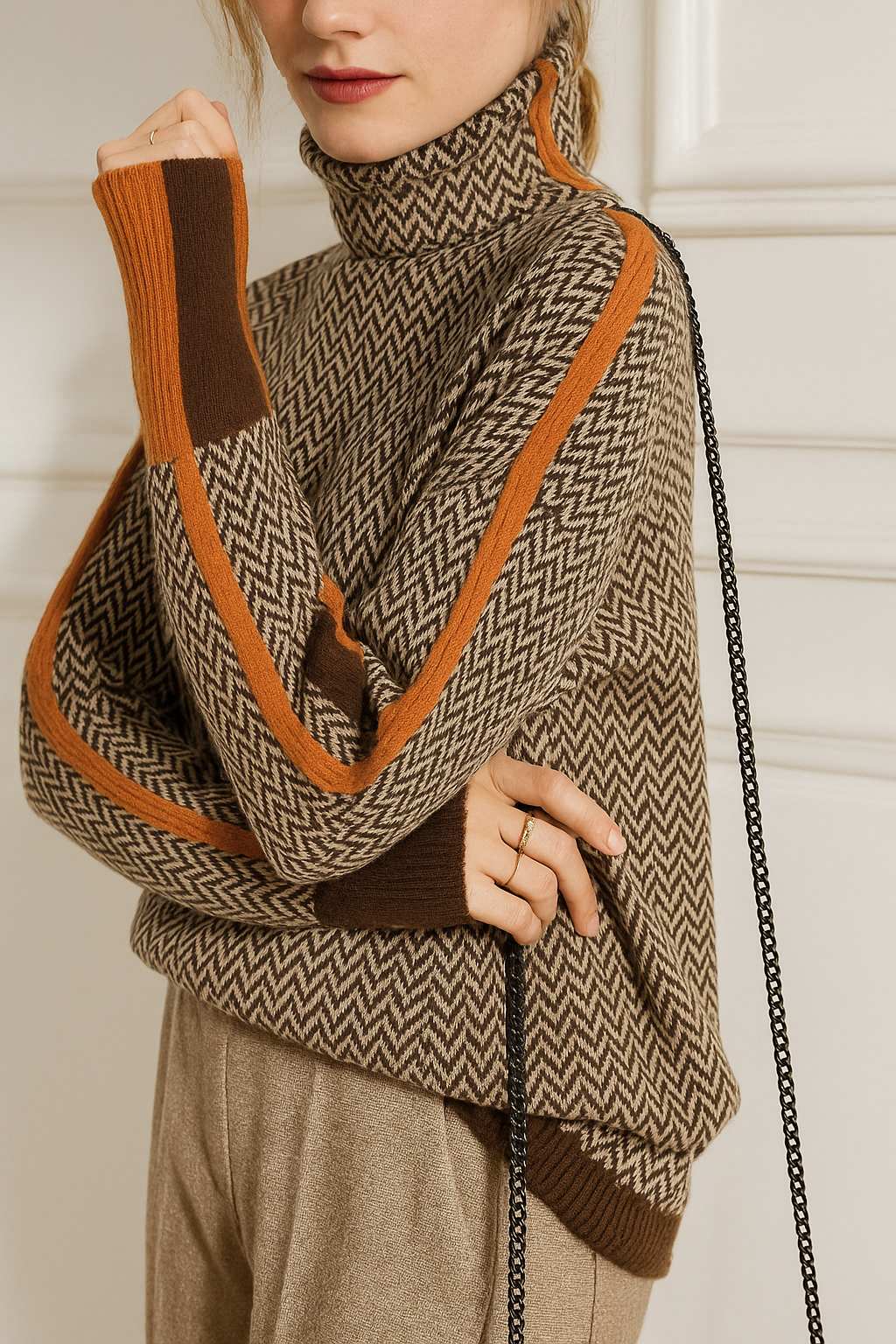 Vera | Pullover mit hohem Kragen und kontrastierenden Streifen.